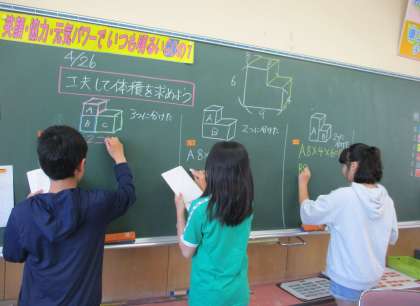 算数の様子です。 自分の考えを黒板に書いて、分かりやすく発表しました。