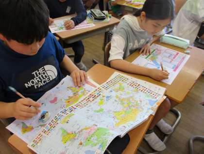 社会科の様子です。 地図帳を使って調べながら学習を進めました。