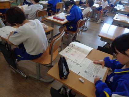 書写の学習では、改めて姿勢を正して書くことを確認し、正しい書き順で字を書きました。とても集中して取り組むことができました。