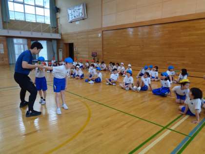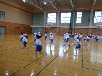 2人組になりバトンパスの練習をしました。できるだけスピードを落とさずにパスができるように練習を重ねていきます。