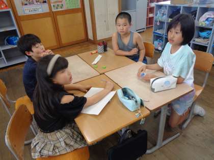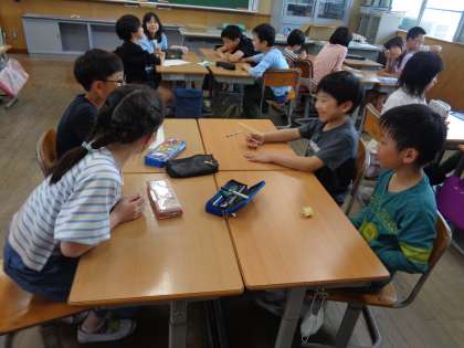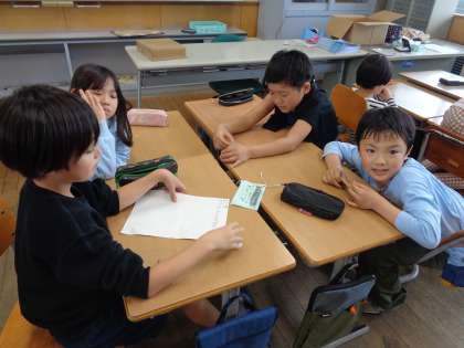 宮野地区や宮野小学校のよいところを友達と話し合いました。たくさん宮野のよいところが出てきました。