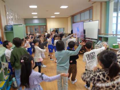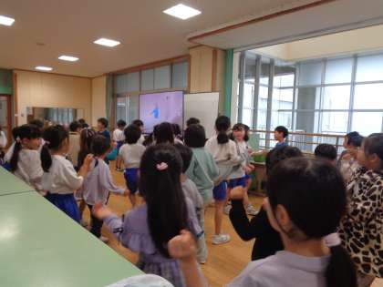 体育の学習では、運動会で行う低学年ダンス・玉入れの練習が始まっています。朝の会までの時間や休み時間には、ダンスの練習をしている子供たちがたくさんいます。最初は少人数でしたが、徐々に人数も増えてきて、みんなで楽しくダンスに取り組んでいます。