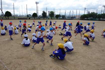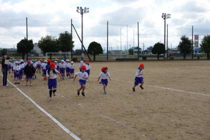 運動会に向け、徒競走の練習です。スタートの構えや走り方に気を付けて、最後まで走り抜けました。