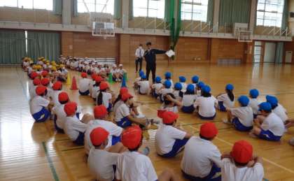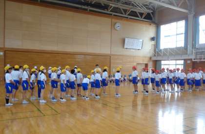 運動会に向けて、高学年での体育がスタートしました。今日は、綱引きの流れや並び順を5.6年生で確認しました。