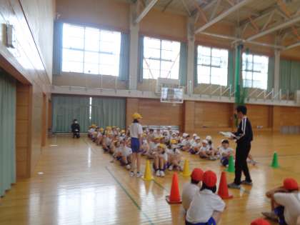 運動会の綱引きの練習を、高学年で行いました。綱がなくても、綱があるかのように真剣に練習に取り組み、移動の確認を行いました。