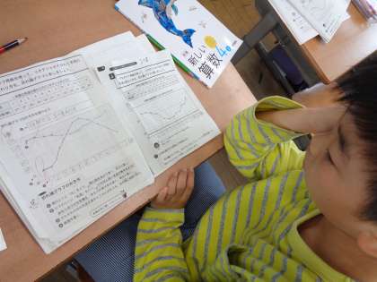 リオデジャネイロの気温を示した2種類のグラフを見比べました。同じデータでも、グラフの1マスの大きさが異なるとグラフの形が変わって見えることや不要な部分を省略することでグラフが大きく見えて分かりやすいことなどに気づきました。