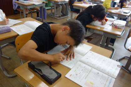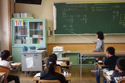 引き算の筆算の学習に取り組んでいます。「まずは…」「次に…」と手順を確かめながら、問題に取り組んだり、声に出して説明したりしました。