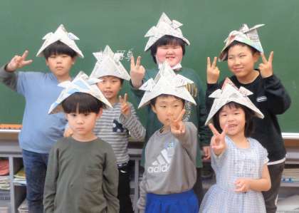 あおぞら・のぞみ級「新聞紙でかぶとを作りました」