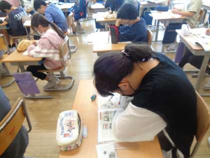 日本国憲法の考え方が自分たちの生活とどのように関わっているか、教科書を使って調べました。選挙や情報公開制度など、様々な取り組みと関わりがあることを学習しました。