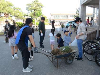大勢の宮野っ子と保護者の皆様、教職員で清掃活動を行いました。休日の朝ではありましたが、ご参加いただきありがとうございました。