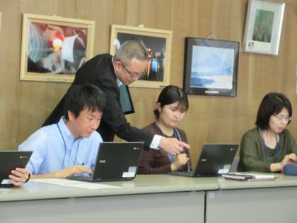 富山市教育センターから講師をお招きし、出前講座を行いました。校務の効率化を目指し、ICTの活用方法を学びました。子供とともに、教員もわくわくしながら学び続けていきます。