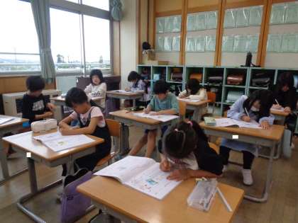 漢字の学習では、丁寧に字を書いています。何度も何度も練習することで定着を図っていきます。