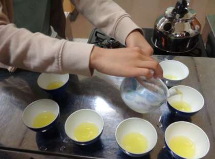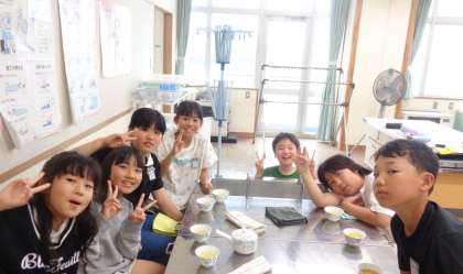 初めての調理実習はお湯を沸かしてお茶をみんなで飲みました。初めてお茶を入れた子どもたちも多く、楽しんで実習を行うことができました。