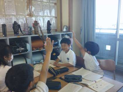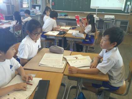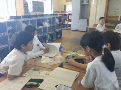 友達の話を興味深く聞き、進んで質問する姿が見られました。