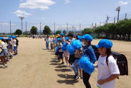 明日の運動会に向けて、応援合戦の練習を全学年で行いました。5年生も後ろから大きな声で他学年を支えます。明日が楽しみです!