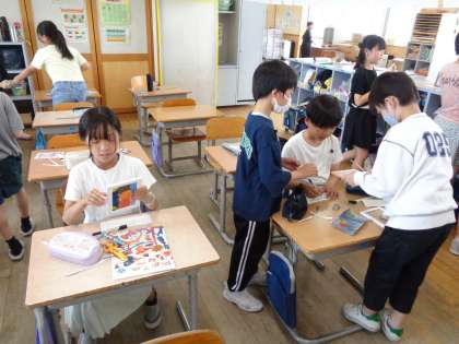 図工の時間に作成した「〇〇もよう」の作品を額縁に入れました。すてきな作品に仕上がりました。