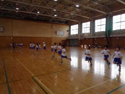 20mシャトルランに取り組みました。あきらめずに走り、自己新記録を更新した子供も多かったようです。「がんばれ!」と大きな声で声援を送り合っていました。