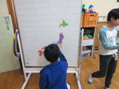社会科の学習で、都道府県パズルをしました。パズルをしながら、都道府県の名前や場所などを確認することができました。