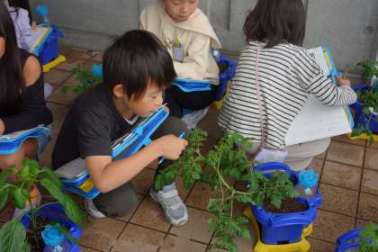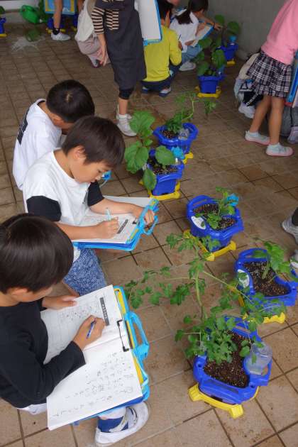国語科の学習です。生活科で育てている野菜をテーマにして、観察のポイントに沿って、必要なことをメモをしました。