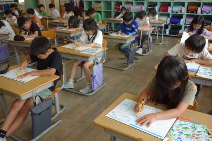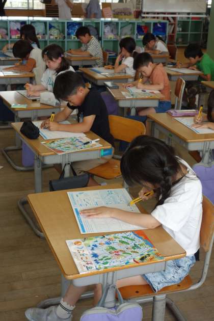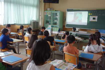 図画工作科の学習の様子です。カッターの使い方を学習し、実際に使ってみました。