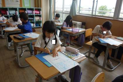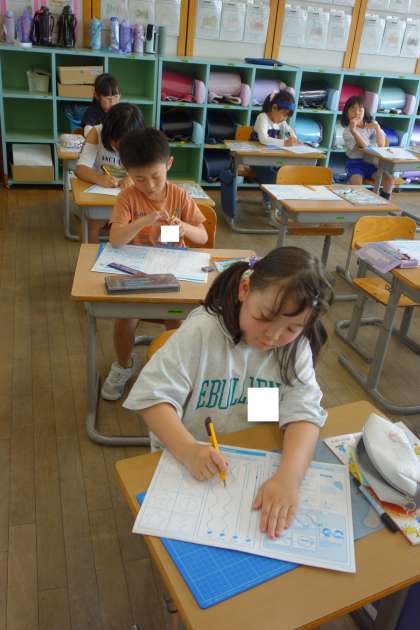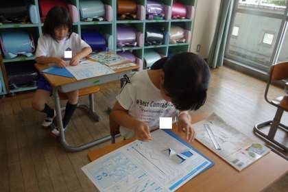 まっすぐな線、ギザギザの線、ぐねぐね曲がった線、…いろいろな線をカッターで切りましたが、なかなか難しいようです。練習して、上手に切れるようになていきましょうね。