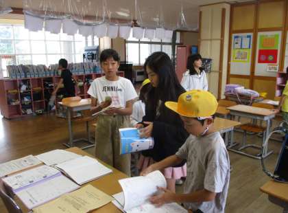 登校したら、宿題や自学ノートなど、みんなはきちんとそろえて提出しています。