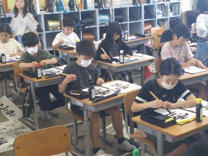 今日は「雲」の清書に取り組みました。1回目の練習で書いた字とお手本を比べ、自分の目標をもって取り組みました。