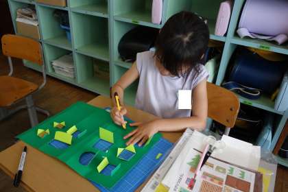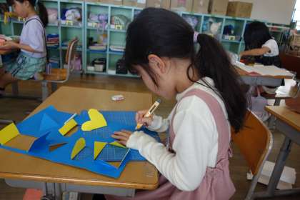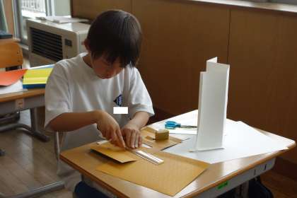 カッターナイフの扱い方の練習を終え、いよいよ作品づくり。どんな作品になるのか楽しみですね。