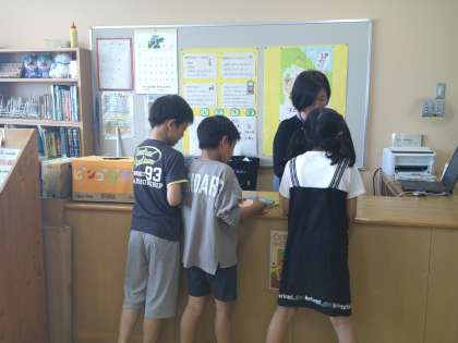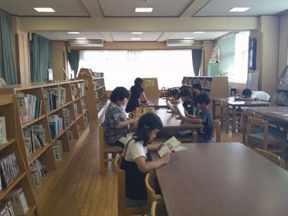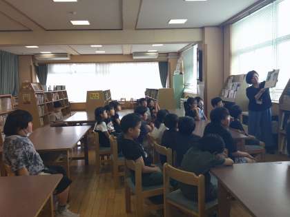図書室に行きました。司書教諭の先生に読み聞かせをしていただいた後、本を借りて読書をしました。