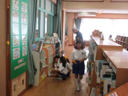 たくさんの本があって迷います。でも、お気に入りの本や読みたい本を上手に見つけています。