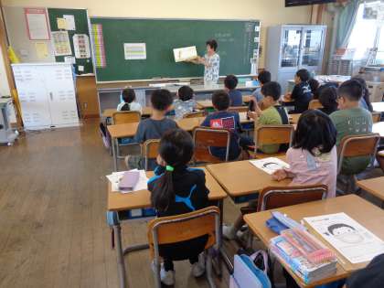 今年度初めての読み聞かせがありました。 子どもたちは興味津々で話に聞き入っていました。