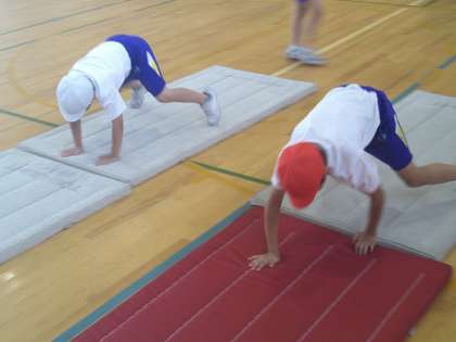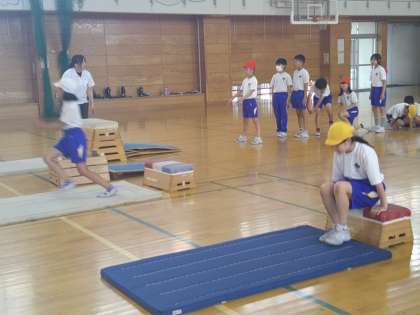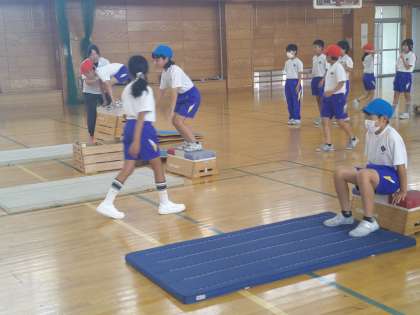 今日は、富山市スポーツ協会のスポーツ指導員の方に来ていただき、跳び箱の指導をしていただきました。