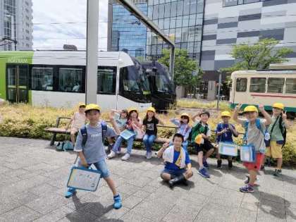 昼食の後は、市内電車に乗車して駅北まで行きました。子供たちは、駅北では、高さ111mの「タワートリプル1」に驚いていました。駅内では「とやマルシェ」で富山の特産物をたくさん見付けました。駅南では、格好いいセントラムやポートラムが行き交う様子を見ることができました。