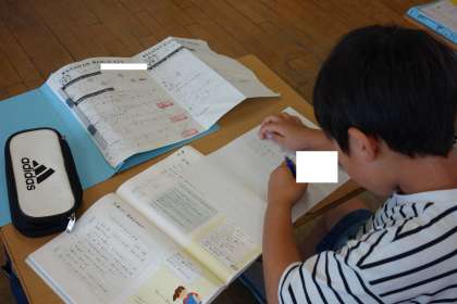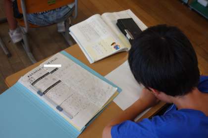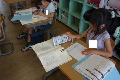 国語科の学習の様子です。昨日の「まちたんけん」で見付けたことをもとに文章を書きました。自分の探検メモをじっくりと見ながら、丁寧に文章に表すことができました。