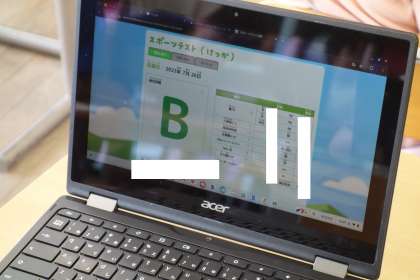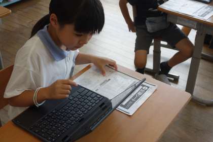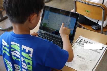 2年生は体力テストの測定が終了しました。測定した記録を、端末を使って入力しました。1年生の記録と比較しながら、伸びを喜んでいる子供たちでした。