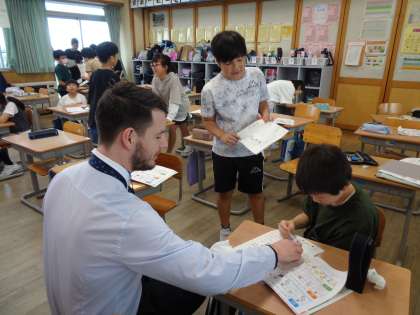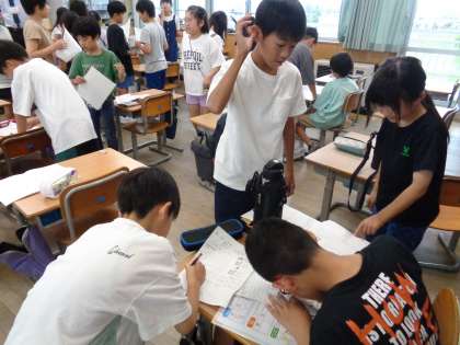 曜日を言い方を学習をしています。歌に合わせて繰り返し発音の練習をしたり、「What days do you like?」と友達に尋ねたりして、英語の表現に慣れ親しみました。