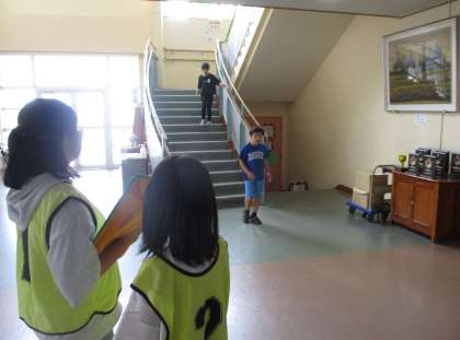 5年生は廊下を歩こうプロジェクトを立ち上げました。放送で呼びかけたり、安全パトロールをしたり、各クラスに「歩けた人調べ」を行ったりしています。
