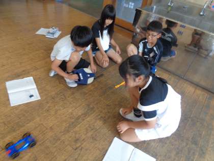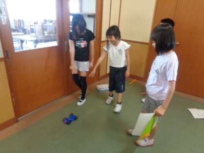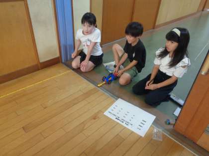ゴムの伸ばし方によって、車の進み方がどのように変わるのかを調べました。
