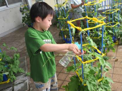 愛情いっぱい、お世話を頑張っています。何色のお花が咲くのかをみんな楽しみにしています。