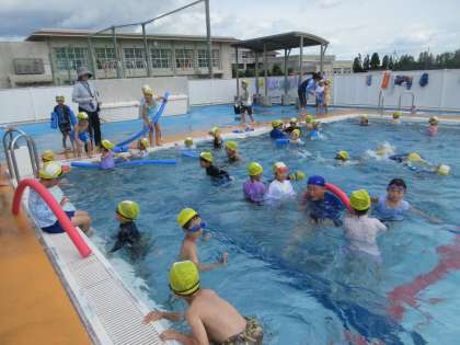 授業の終わりにはお楽しみタイムもあります。とてもうれしそうです。先生のお話をよく聞き、安全に運動しています。