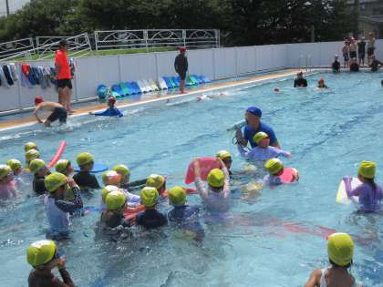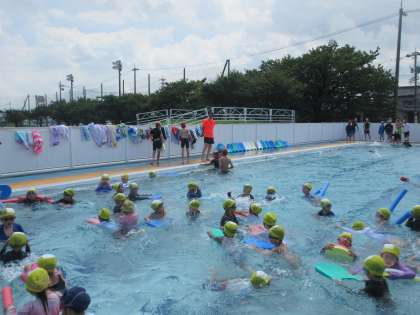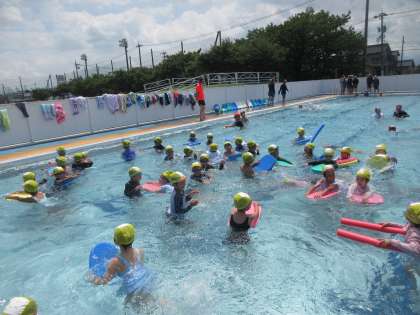 水に浮いてみるチャレンジタイムもありました。6年生の横で頑張っていました。