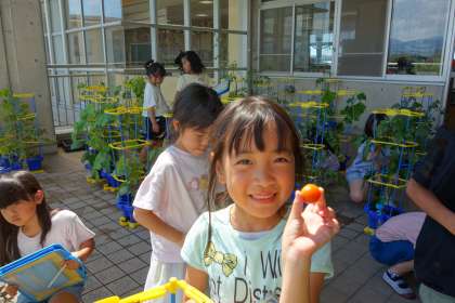 子供たちの鉢に、どんどん野菜が実っています。