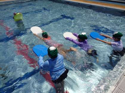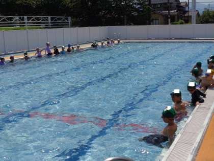 水泳学習では、水の中にもぐったりビート板を使って泳いだりして、楽しみました。