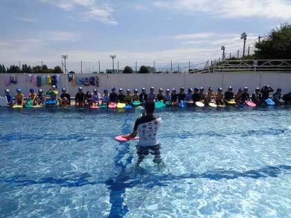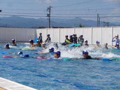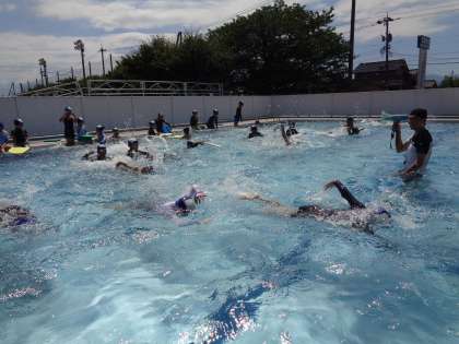 バタ足を中心に練習しました。青空の下、気持ちよく泳ぎました。