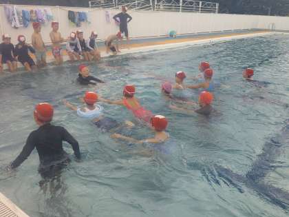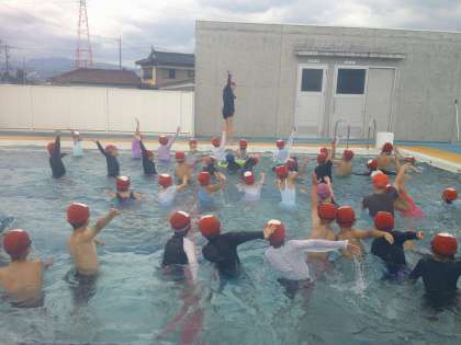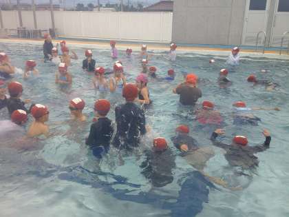 最初に、手をのばして歩く練習、次に、息を吐きながらもぐる練習、そしてクロールの手の練習、息継ぎの練習と、どんどん練習が進みました。