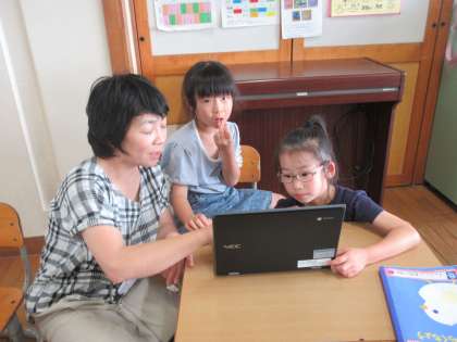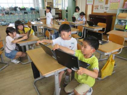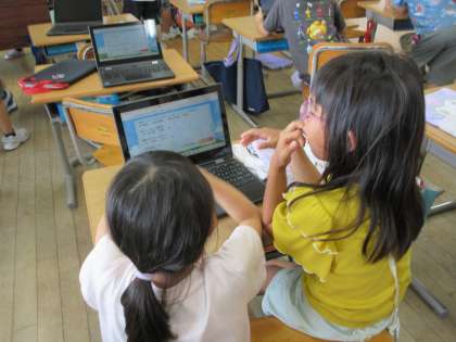 自分たちでアンケート入力をしています。先生や友達と力を合わせてがんばっていました。
