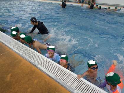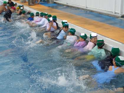 今日は、2回目の水泳教室がありました。バタ足の練習をしたり、クロールの練習をしたりしました。1年生の時と比べて泳ぎが上達してきた子供たちです。