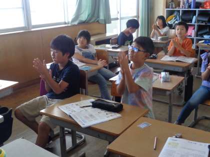 正しい手洗いの仕方を動画で見ながら、その場でまねをして洗う練習をしました。