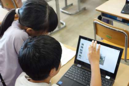 野菜の鉢の持ち帰りの前に、写真を撮影し、スライドにまとめています。