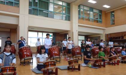 1学期も後少しで終わる中、2学期の学習発表会に向けて太鼓の練習を本格的に始めました。心をひとつに思いを込めて太鼓を叩くことを意識して練習を行っています。